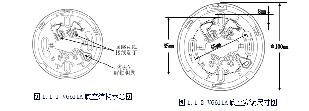 V6611A探測(cè)器底座結(jié)構(gòu)簡(jiǎn)單、安裝方便、結(jié)構(gòu)件配合牢固;具有探測(cè)器防丟失結(jié)構(gòu)設(shè)計(jì),每只底座均備有專(zhuān)用的解鎖鑰匙。底座備有長(zhǎng)圓形安裝定位孔,可適應(yīng)于86H50型標(biāo)準(zhǔn)預(yù)埋盒及其它型號(hào)的預(yù)埋盒。